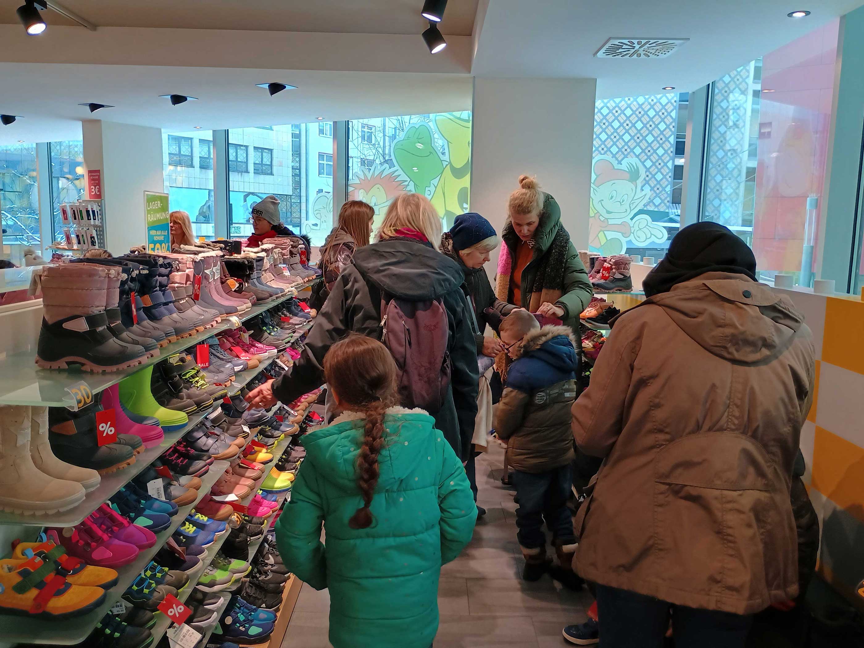 Am 18. Januar 2024 war es soweit. Dank der von Gabriela und Wolfgang Ebert angestoßenen Aktion- Ankauf von Schuhen für hilfsbedürftige Kinder in Wuppertal – waren zahlreiche Spenden eingegangen. In Begleitung von Elena Merlakova, neue Co-Leiterin der Kindertafel, kamen zahlreiche kleine Besucherinnen und Besucher der Kindertafel mit ihren Müttern in das Schuhhaus Klauser in Elberfeld, um winterfeste Schuhe auszusuchen. Für deren Kauf gewährte die „Schuhhaus Klauser GmbH & Co KG“ der Tafel einen großzügigen Rabatt. Filialleiterin Anette Isenberg: „Ich freue mich sehr, wenn wir als Unternehmen mit dieser Aktion hilfsbedürftige Kinder in der Stadt unterstützen können.“